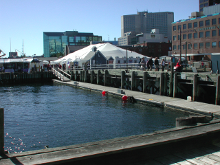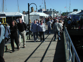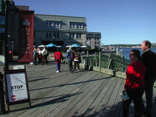 10/15/2005. Halifax, Nova Scotia is a major port on the Atlantic Ocean. The city's population is about a half a million. The intrguing aspect is the approach to the use of the waterfront.. A "boardwalk", uninterrupted, runs south about a mile from the casino to the "port". This "boardwalk" gives the visitor continuous access to the water. Courtesy http:/www.halifaxinfo.com The early 19th Century warehouses have been rehabbed The "boardwalk" extends about a continuous mile along the waterfront maritime museum boat Saturday afternoon Residential and commercial mixtures along the shore side Terminating at the "port", where cruise ships arrive. LARGE cruise ships