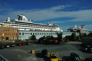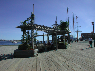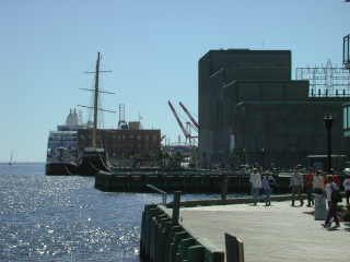 10/15/2005. Halifax, Nova Scotia is a major port on the Atlantic Ocean. The city's population is about a half a million. The intrguing aspect is the approach to the use of the waterfront.. A "boardwalk", uninterrupted, runs south about a mile from the casino to the "port". This "boardwalk" gives the visitor continuous access to the water. Courtesy http:/www.halifaxinfo.com The early 19th Century warehouses have been rehabbed The "boardwalk" extends about a continuous mile along the waterfront maritime museum boat Saturday afternoon Residential and commercial mixtures along the shore side Terminating at the "port", where cruise ships arrive. LARGE cruise ships